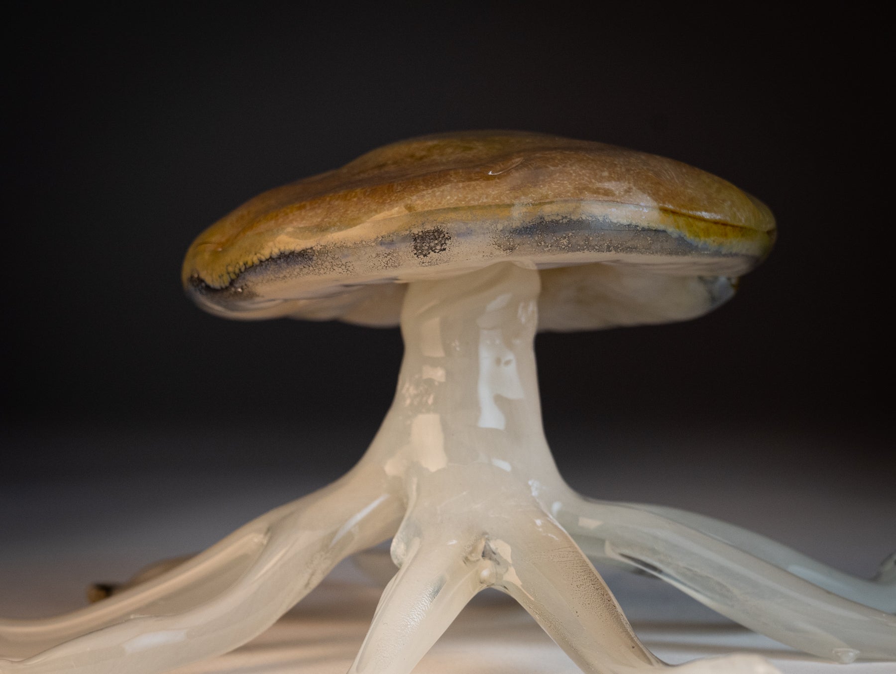 A part of "Fruiting Bodies: Creatures of Culture", an installation of hand-fabricated glass by artist Deborah Czeresko (she/they) that formally references the wild glamour of a forest. Posing glass as an androgynous material, Czeresko explores how the fluid state of glass embodies the parallel ways in which LGBTQIA+ culture and natural ecosystems germinate and grow. Through sculpture, the artist explores philosophies of queer identity, glamour paradigms, chosen family and community, abundance in marginalization, and the nonbinary quality of glass.